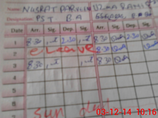 | CNIC | Full Name | Designation | R/C | Absence During Last Calender Month |