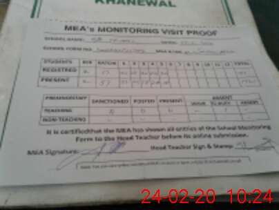 | Attendance Register | Head Teacher | MEA with School | Visit Proof |