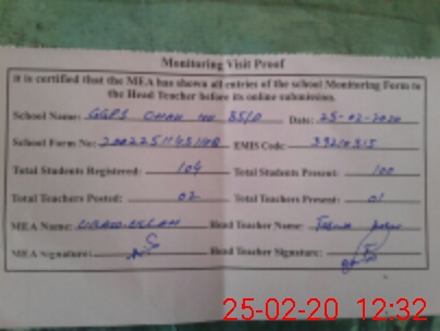 | Attendance Register | Head Teacher | MEA with School | Visit Proof |