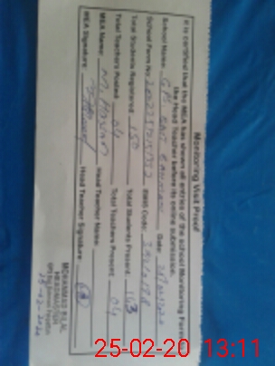 | Attendance Register | Head Teacher | MEA with School | Visit Proof |
