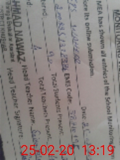 | Certified that this School was Inspected by the Undersigned MEA/DMO Today and the Information Stated Above is as Per Record. | |||||
