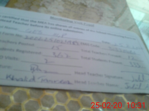 | Certified that this School was Inspected by the Undersigned MEA/DMO Today and the Information Stated Above is as Per Record. | |||||