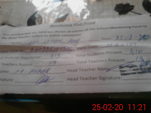 | Name: Za**** Ak**** Designation: (School Headmaster's/Headmistress's) Head Master Phone/Cell Number: 03**** |