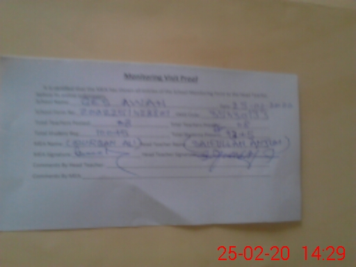 | Attendance Register | Head Teacher | MEA with School | Visit Proof |