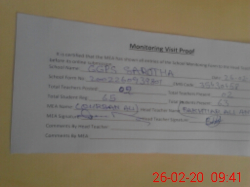| EMIS Code: 35430458 | Name of School: GGPS MODEL SAROTHA | |||