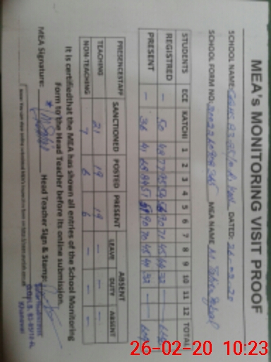 | Attendance Register | Head Teacher | MEA with School | Visit Proof |