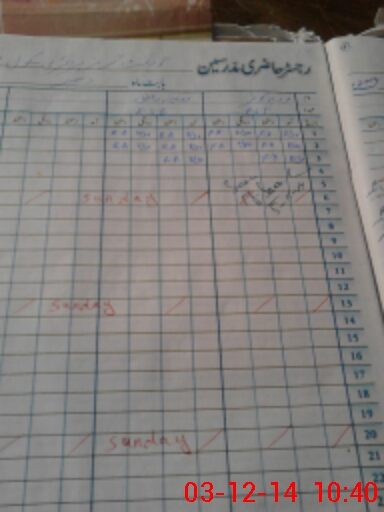 | CNIC | Full Name | Designation | R/C | Absence During Last Calender Month |