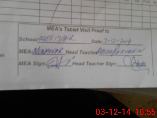 | Attendance Register | Head Teacher | MEA with School | Visit Proof |