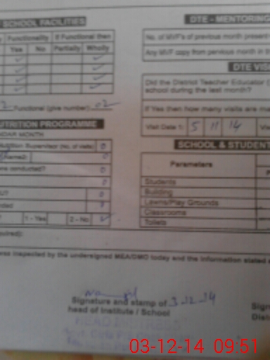 | Certified that this School was Inspected by the Undersigned MEA/DMO Today and the Information Stated Above is as Per Record. | |||||