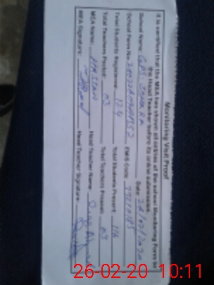 | Attendance Register | Head Teacher | MEA with School | Visit Proof |