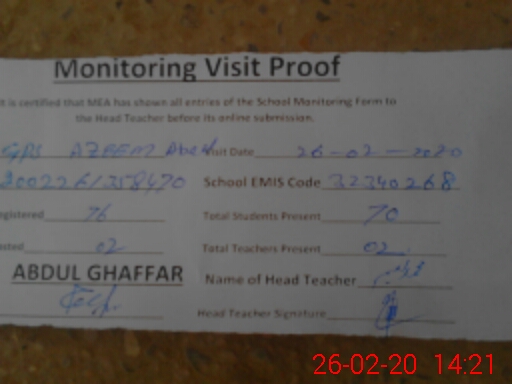| EMIS Code: 32340268 | Name of School: GPS AZEEM ABAD | |||