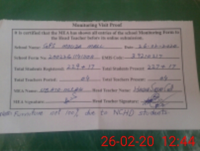 | Certified that this School was Inspected by the Undersigned MEA/DMO Today and the Information Stated Above is as Per Record. | |||||