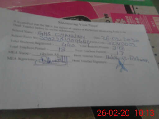 | EMIS Code: 32310002 | Name of School: GHS CHUNJAN | |||