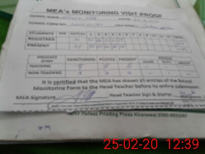 | Certified that this School was Inspected by the Undersigned MEA/DMO Today and the Information Stated Above is as Per Record. | |||||