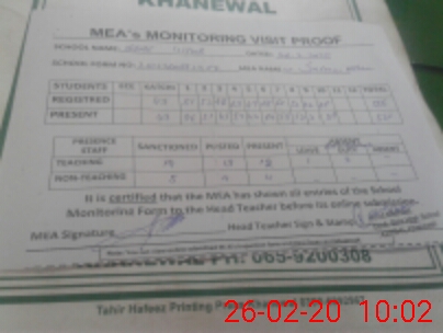 | Certified that this School was Inspected by the Undersigned MEA/DMO Today and the Information Stated Above is as Per Record. | |||||