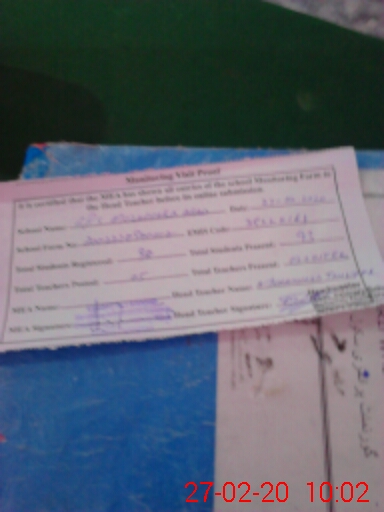 | EMIS Code: 39220164 | Name of School: GPS MOHALA MUZAFFAR ABAD | |||