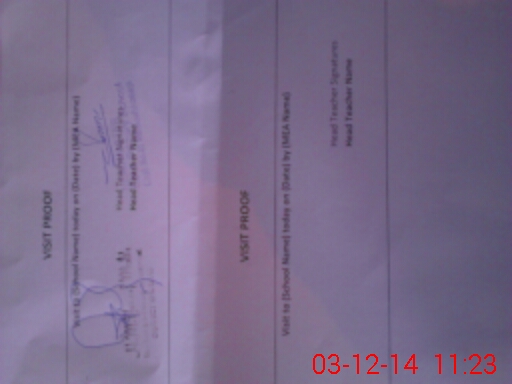 | Attendance Register | Head Teacher | MEA with School | Visit Proof |