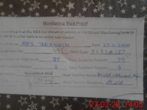 | EMIS Code: 32320137 | Name of School: GPS TARANDIN | |||