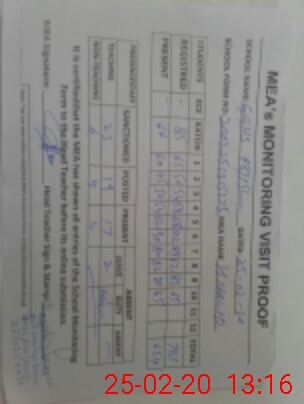 | Attendance Register | Head Teacher | MEA with School | Visit Proof |