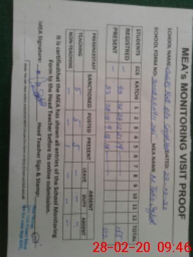 | Certified that this School was Inspected by the Undersigned MEA/DMO Today and the Information Stated Above is as Per Record. | |||||