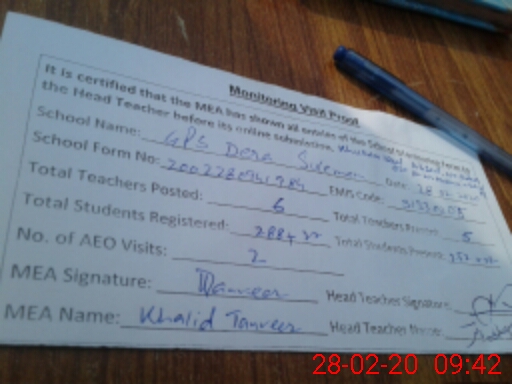 | EMIS Code: 31330205 | Name of School: GPS DERA SULEMAN | |||