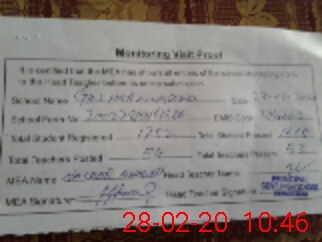 | Attendance Register | Head Teacher | MEA with School | Visit Proof |