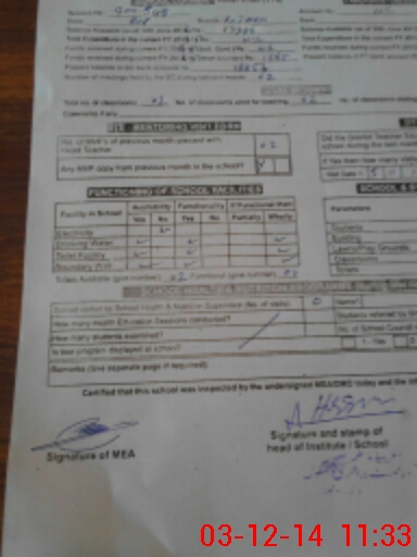 | Certified that this School was Inspected by the Undersigned MEA/DMO Today and the Information Stated Above is as Per Record. | |||||