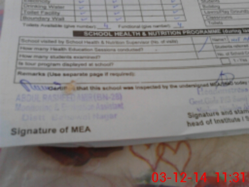 | Certified that this School was Inspected by the Undersigned MEA/DMO Today and the Information Stated Above is as Per Record. | |||||