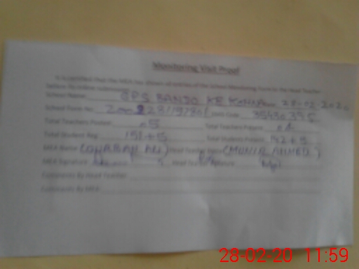 | Attendance Register | Head Teacher | MEA with School | Visit Proof |