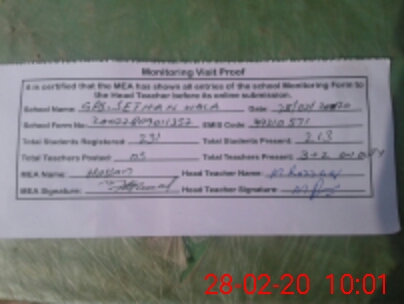 | Attendance Register | Head Teacher | MEA with School | Visit Proof |