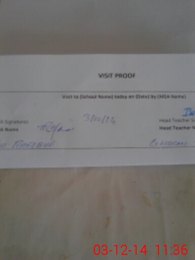 | Attendance Register | Head Teacher | MEA with School | Visit Proof |