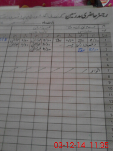 | CNIC | Full Name | Designation | R/C | Absence During Last Calender Month |