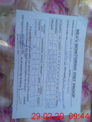 | Attendance Register | Head Teacher | MEA with School | Visit Proof |