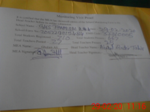 | Attendance Register | Head Teacher | MEA with School | Visit Proof |