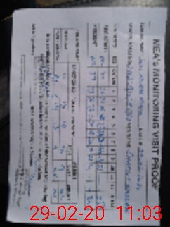 | Monitoring Date: 29-02-2020 | Start Time: 29-02-2020 09:39 AM | End Time: 29-02-2020 11:04 AM | Name of MEA: Sh**** Na**** | |
