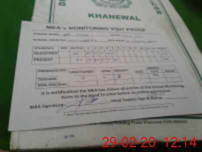 | Attendance Register | Head Teacher | MEA with School | Visit Proof |