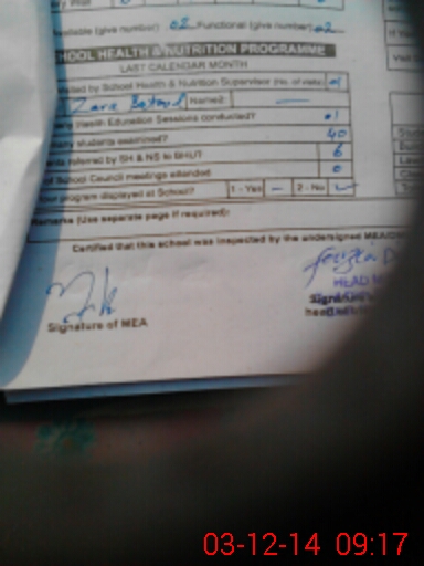 | Certified that this School was Inspected by the Undersigned MEA/DMO Today and the Information Stated Above is as Per Record. | |||||