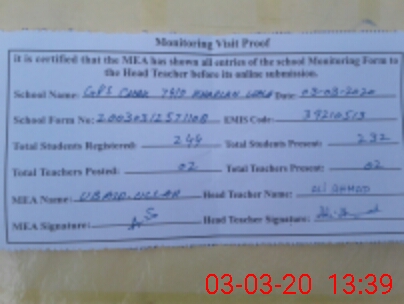 | EMIS Code: 39210513 | Name of School: GPS CHAK NO.74 D KHARLAN WALA | |||