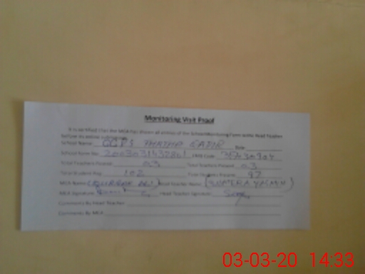 | Attendance Register | Head Teacher | MEA with School | Visit Proof |