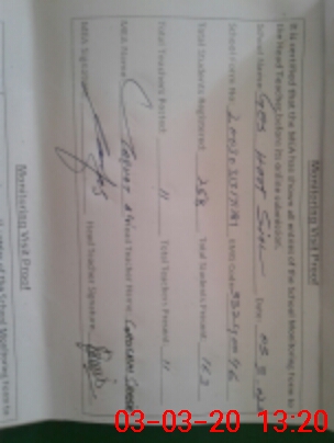 | Attendance Register | Head Teacher | MEA with School | Visit Proof |