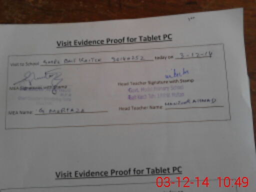 | Attendance Register | Head Teacher | MEA with School | Visit Proof |