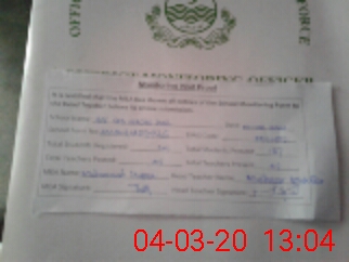 | Attendance Register | Head Teacher | MEA with School | Visit Proof |
