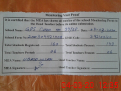 | Attendance Register | Head Teacher | MEA with School | Visit Proof |