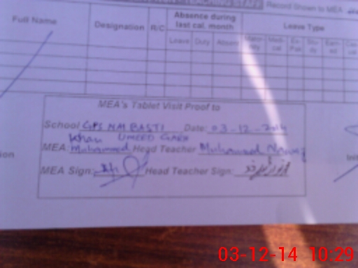 | Attendance Register | Head Teacher | MEA with School | Visit Proof |