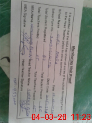 | Attendance Register | Head Teacher | MEA with School | Visit Proof |