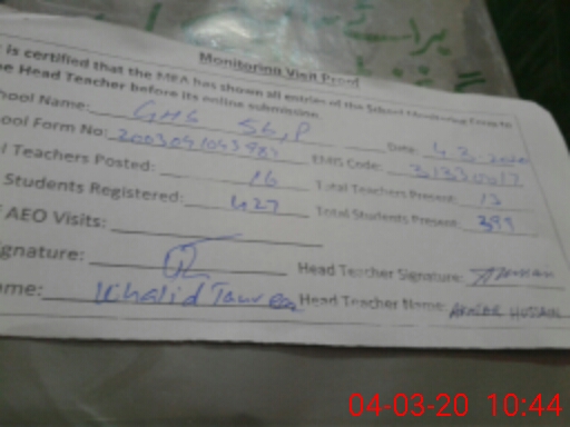 | Name: AK**** HU**** Designation: (School Headmaster's/Headmistress's) Sr HM Phone/Cell Number: 03**** |