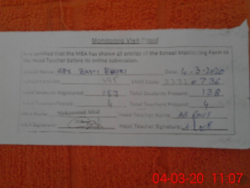 | EMIS Code: 32320736 | Name of School: GPS BASTI BUKHI | |||
