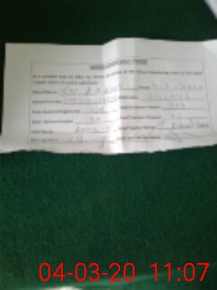 | Monitoring Date: 04-03-2020 | Start Time: 04-03-2020 10:29 AM | End Time: 04-03-2020 11:10 AM | Name of MEA: ZV**** | |