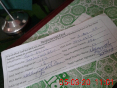 | Attendance Register | Head Teacher | MEA with School | Visit Proof |