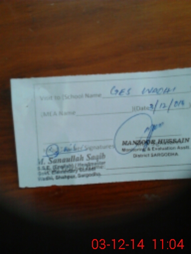 | District: SARGODHA | Tehsil: SHAHPUR | Markaz: WADHI - MALE | Level: Middle | |